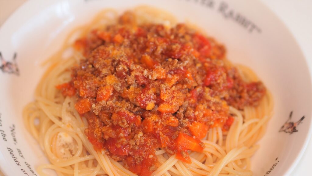 このメニューは作り方を秘密にしたくなるほど「簡単なのに本格的に美味しい」優秀な「なんちゃってメニュー」です。裏ごししてないトマト缶を使えばミートソース、裏ごししている「トマトピューレ」などを使えばボロネーゼらしいですが、イタリアのミート...