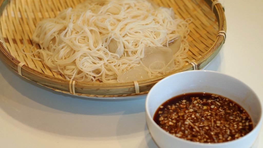 赤味噌つけ汁で食べる冷やしそうめん!