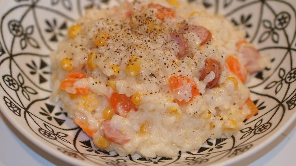 黒胡椒が決め手のコーン&チーズリゾット